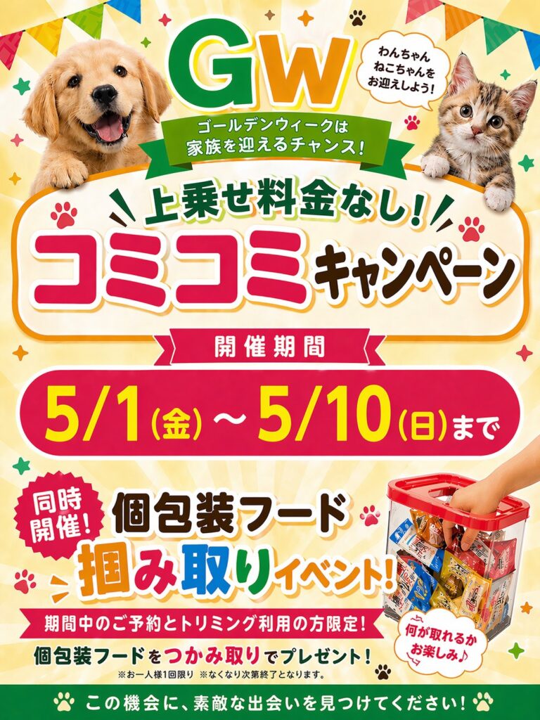 ペットエキスポ盛南店ではゴールデンウィーク限定で