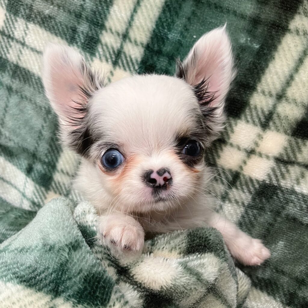 女の子 2025年10月31日生まれ ラバーズドッグ弘前城東店の子 父:チワワ(2.3㎏)、母:アメリカンコッカー(7.6㎏) -