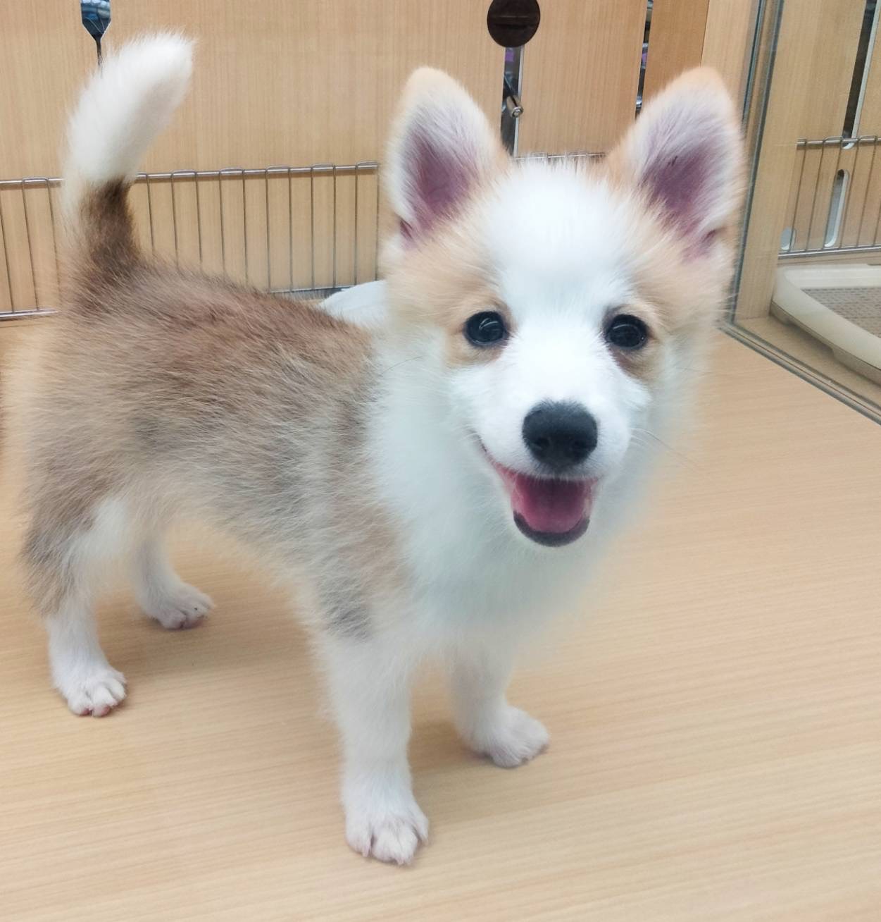 ぽんぽこりんのお腹に足の短さ、ハートの鼻にもっふもふ。どこをとっても「かわいい」しかない💕コーギー×ポメラニアンのミックス君