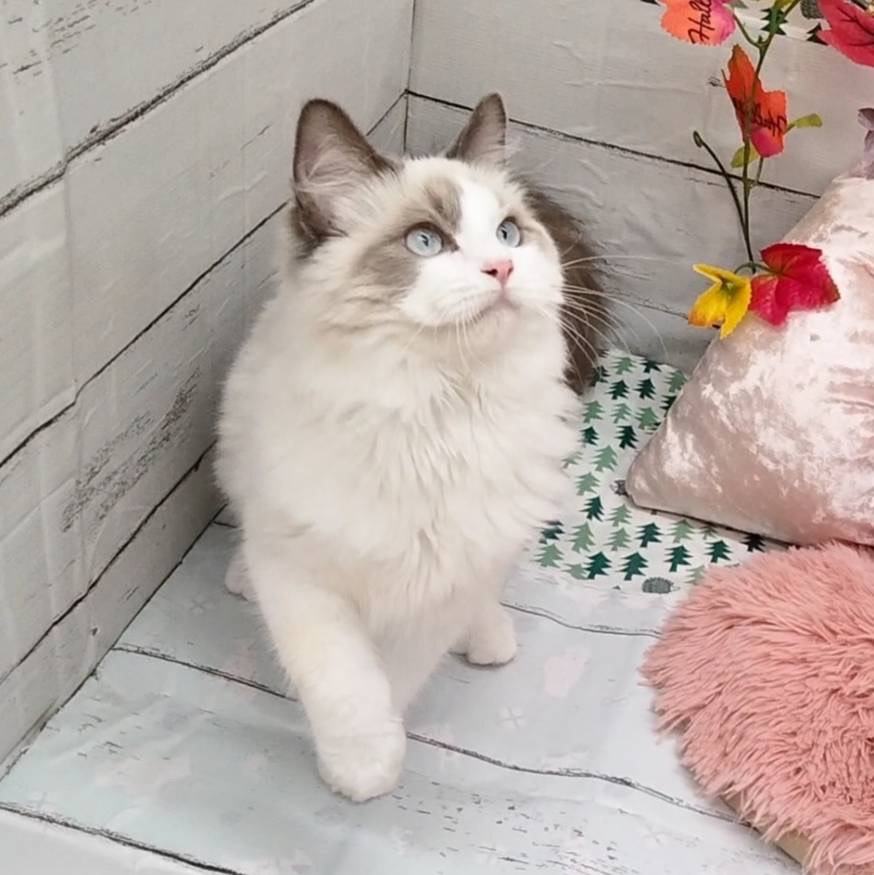 ラグドール 2025 8/07 犬か⁉と思うほど人懐っこいイケメンのラグドール君です✨ 毛色 ブルーポイントバイカラー 性別 男の子 生年月日 2025年04月05日生まれ 販売店 サンペット能代店の子 ビションフリーゼ MIX(マルプー×トイプードル)