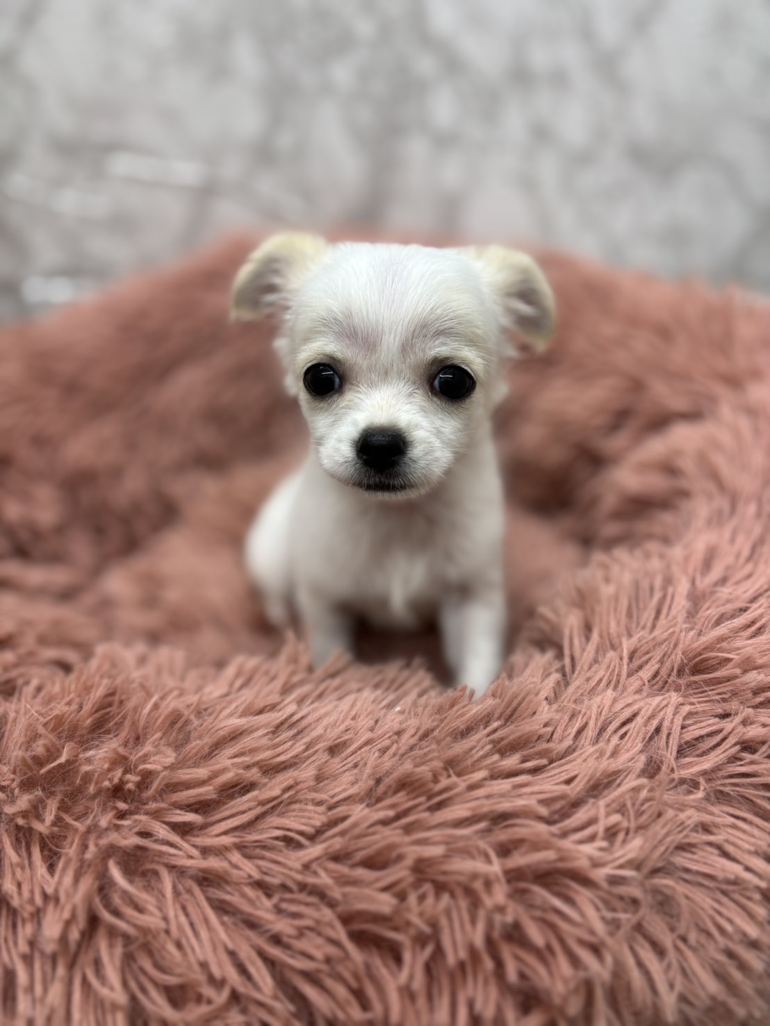 ロングコートチワワ 2025 10/04 ひとり遊びが上手で陽気な性格☆ 毛色 ホワイト&クリーム 性別 男の子 生年月日 2025年06月28日生まれ 販売店 ラバーズドッグ東青森店の子 ミヌエット MIX(ビションフリーゼ×トイプードル)