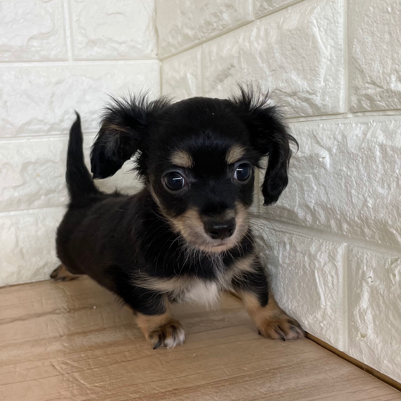 チワックス 2025 10/04 父:チワワ(2.3㎏)、母:Mダックス(4.3㎏) 毛色 ブラックタン&ホワイト 性別 男の子 生年月日 2025年08月08日生まれ 販売店 ラバーズドッグ弘前城東店の子 ポメラニアン Lチワワ