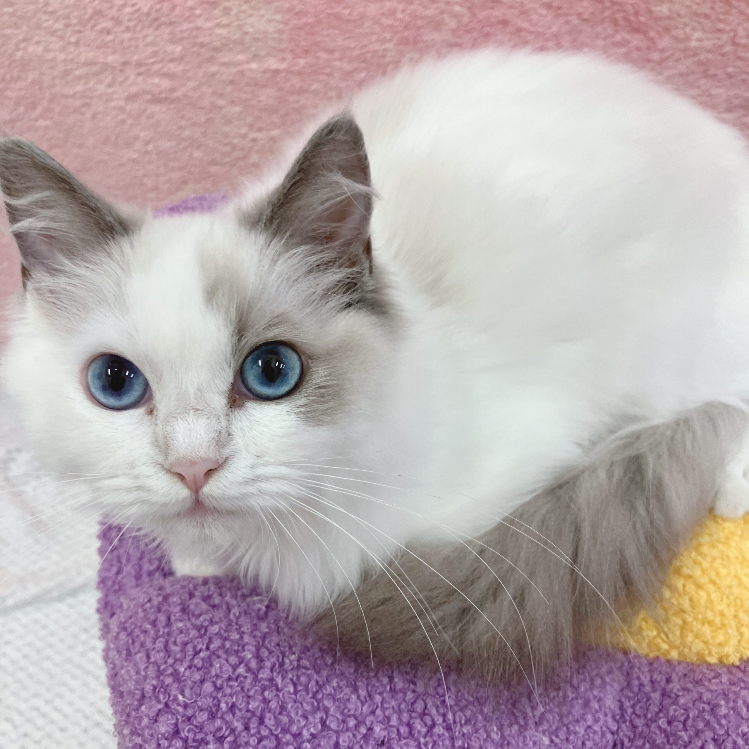 ラグドール 2025 10/08 ビビりちゃんでおとなしい女の子💞 毛色 ブルーポイントバイカラー 性別 女の子 生年月日 2025年04月25日生まれ 販売店 サンペット弘前安原店の子 ラグドール チワワ