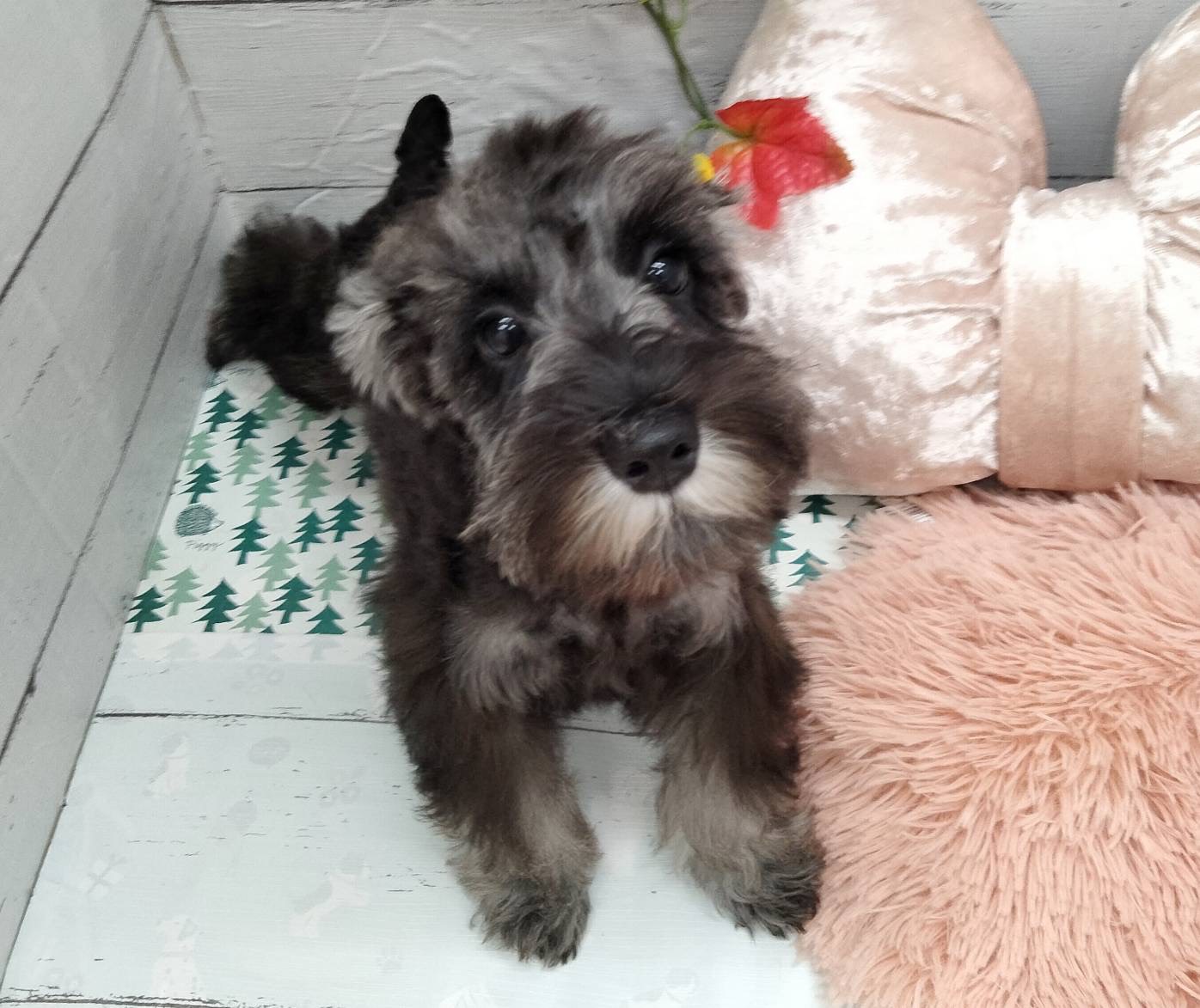 ミニチュア・シュナウザー 2025 10/11 超絶甘えっ仔ちゃん💘飼いやすさ一押しです! 毛色 ブラック&シルバー 性別 女の子 生年月日 2025年07月02日生まれ 販売店 サンペット能代店の子 チワマル 柴 犬