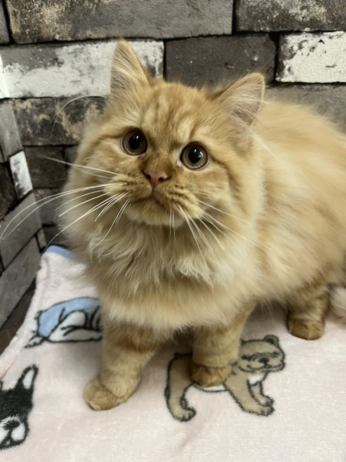 ラガマフィン×サイベリアン 2025 11/08 ラガマフィン×サイベリアンのMIXねこちゃん!少しビビリさんだけど優しい男の子♪ 毛色 レッドタビー 性別 男の子 生年月日 2025年06月17日生まれ 販売店 ペットエキスポ盛南店 犬猫コーナーの子 ポメラニアン×マルチーズ(ポメマル) ロシアンブルー