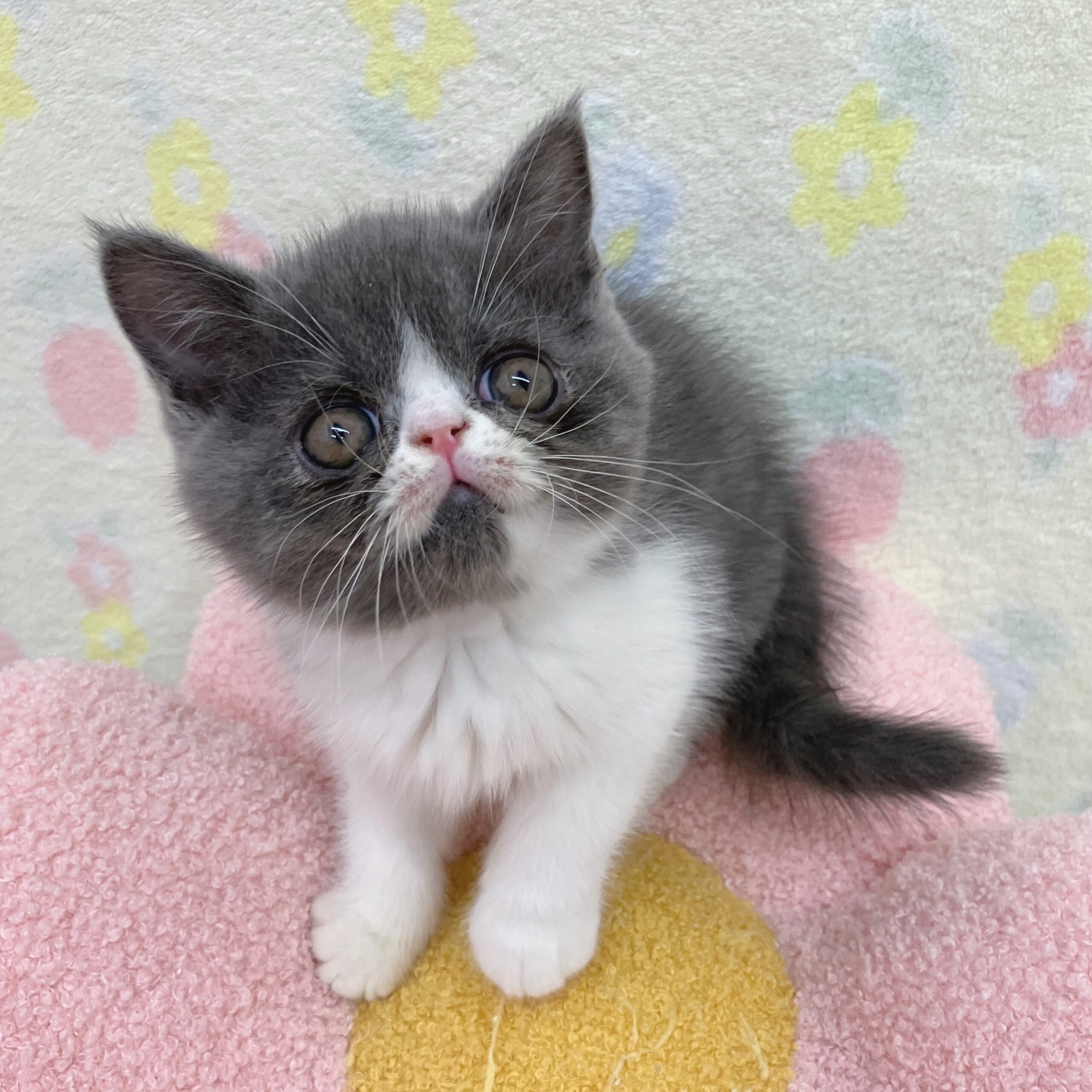 エキゾチックショートヘア 2025 11/09 綺麗なハチワレとくりくりおめめがチャームポイント💛 毛色 ブルー&ホワイト 性別 男の子 生年月日 2025年09月01日生まれ 販売店 サンペット弘前安原店の子 トイプードル MIX(キャバリア×アメリカンコッカー)