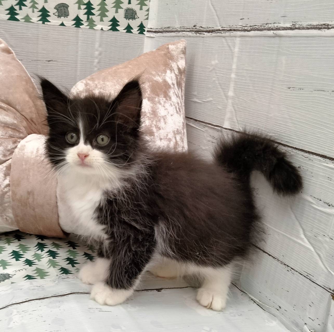 ノルウェージャン・フォレストキャット 2025 11/11 好奇心旺盛で人なつっこい男の子☆ 毛色 &ホワイト&ホワイト 性別 男の子 生年月日 2025年08月22日生まれ 販売店 サンペット能代店の子 マンチカン ミックス犬