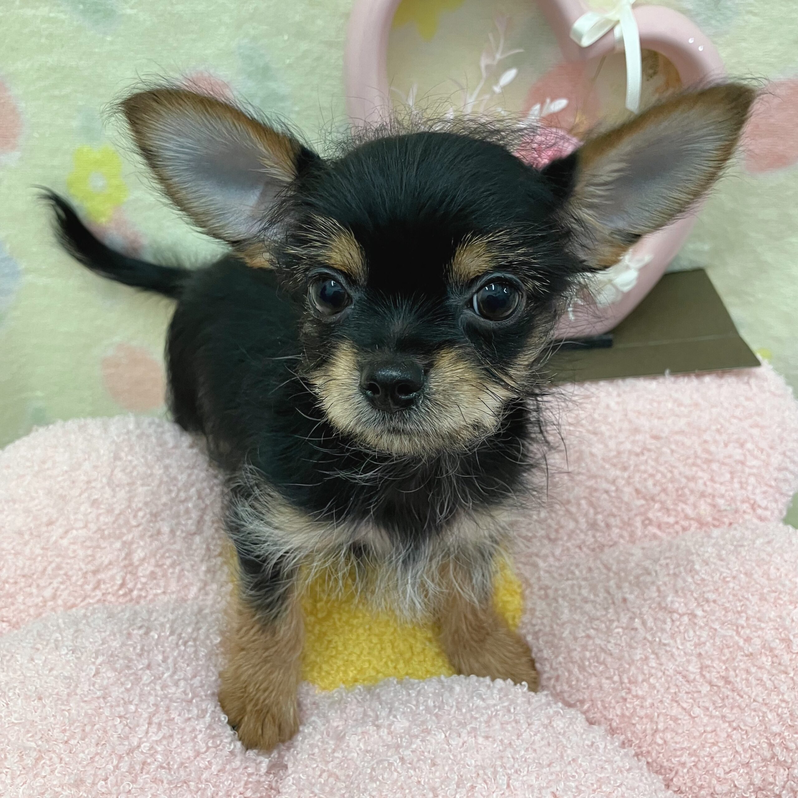 MIX(チワワ×ヨークシャーテリア) 2025 11/21 愛嬌たっぷり!物静かな性格の女の子💞 毛色 ブラックタン 性別 女の子 生年月日 2025年09月20日生まれ 販売店 サンペット弘前安原店の子 ミヌエット トイプードル