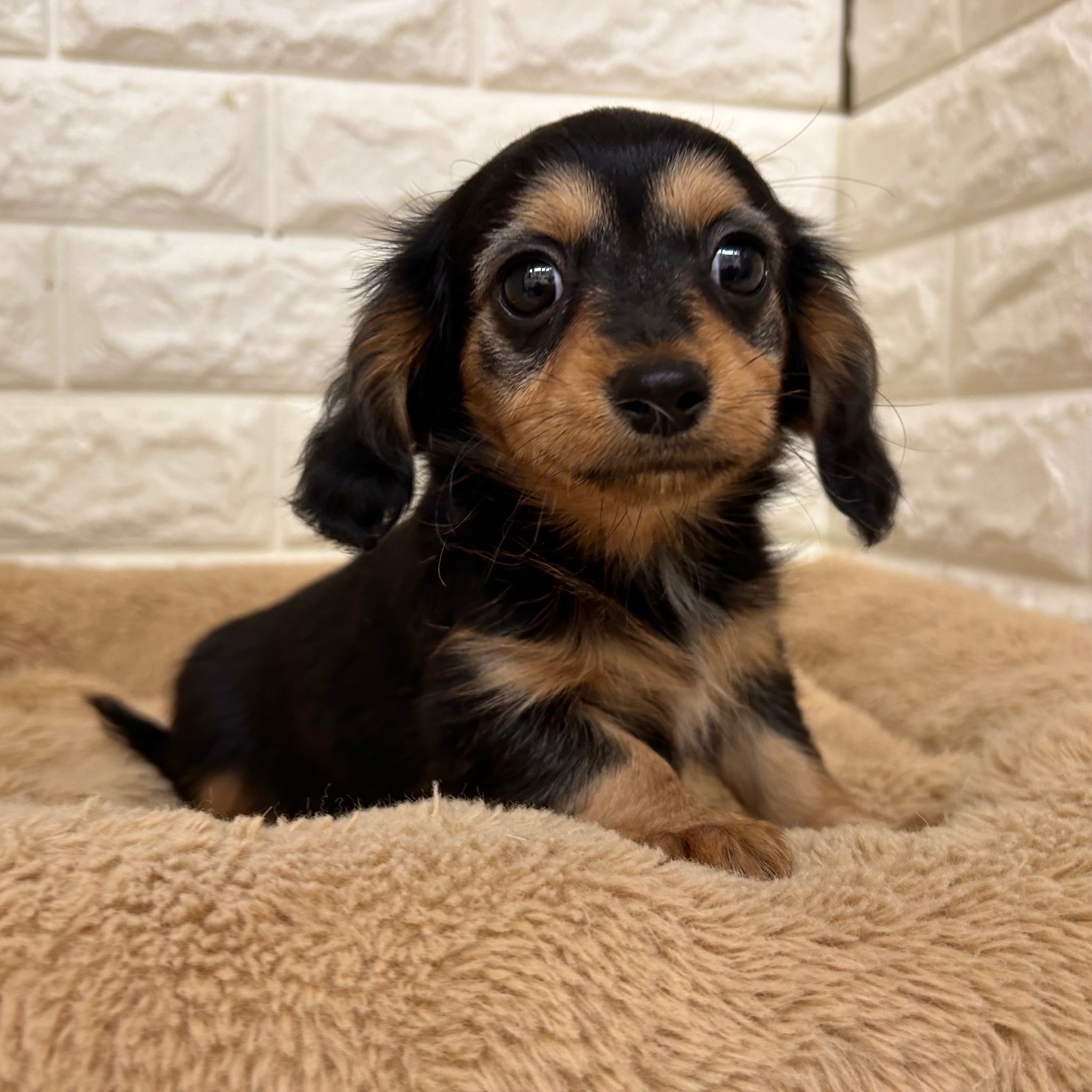チワックス 2025 12/02 父:チワワ(2.5㎏)、母:Mダックス(3.6㎏) 毛色 ブラックタン 性別 男の子 生年月日 2025年10月05日生まれ 販売店 ラバーズドッグ弘前城東店の子 サイベリアン ミニチュア・プードル