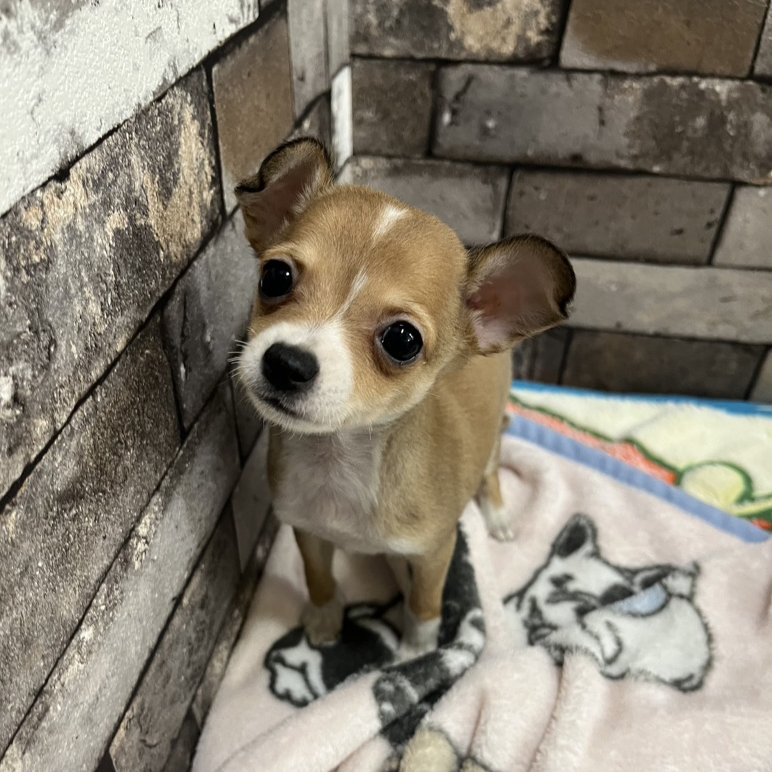 チワグレ(チワワ×イタリアングレーハウンド) 2026 1/14 まん丸おめめが可愛らしい女の子🎀とっても甘えん坊さん💗 毛色 フォーン&ホワイト 性別 女の子 生年月日 2026年11月05日生まれ 販売店 ペットエキスポ盛南店 犬猫コーナーの子 ミヌエット MIX(チワワ×トイプードル)