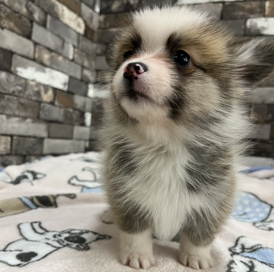ポメコーギー(ポメラニアン×ウェルシュ・コーギー・ペンブローク) 2026 1/29 お鼻のぶち模様が可愛らしい💗まるでぬいぐるみの様な男の子🌟 毛色 レッド&ホワイト 性別 男の子 生年月日 2026年11月30日生まれ 販売店 ペットエキスポ盛南店 犬猫コーナーの子 マルプー(マルチーズ×トイプードル) ペキニーズ