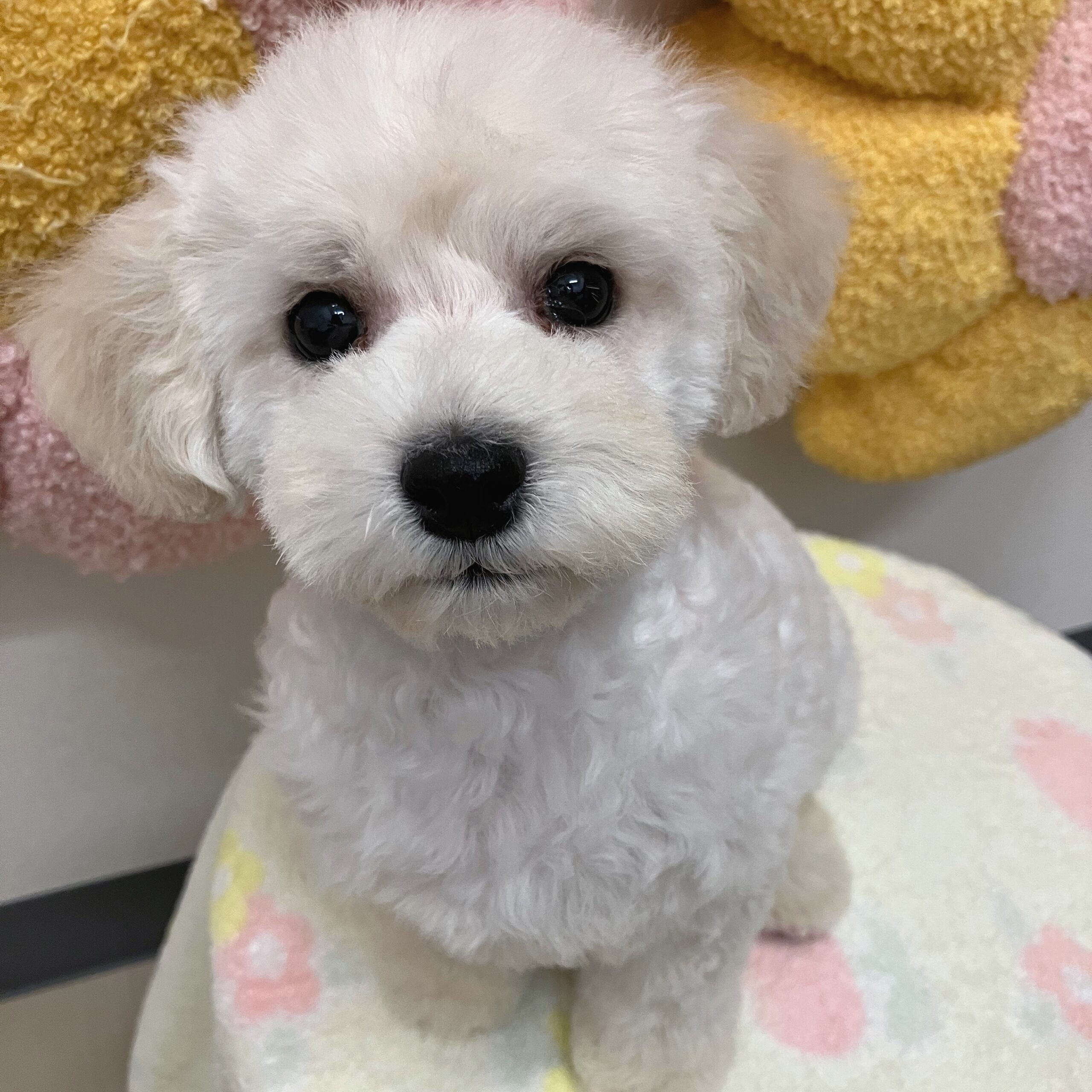 MIX(ビションフリーゼ×トイプードル) 2026 2/06 元気いっぱいで遊ぶのが大好きな男の子🎶 毛色 ホワイト 性別 男の子 生年月日 2025年11月29日生まれ 販売店 サンペット弘前安原店の子 MIX(ビションフリーゼ×トイプードル)