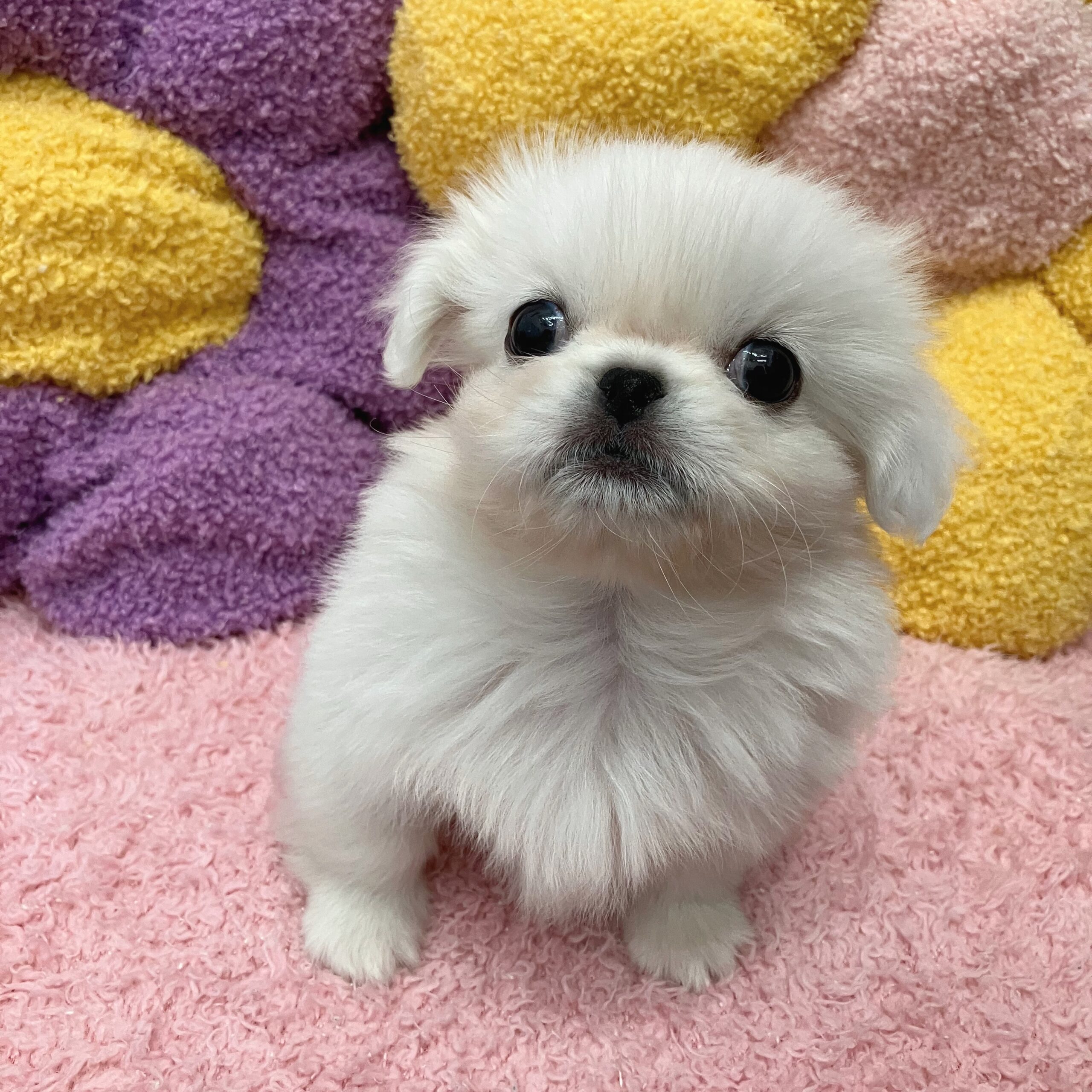 ペキニーズ 2026 3/17 ポケットしたお顔が愛くるしい男の子⭐ 毛色 ホワイト 性別 男の子 生年月日 2026年01月10日生まれ 販売店 サンペット弘前安原店の子 グレート・ピレニーズ ペキニーズ