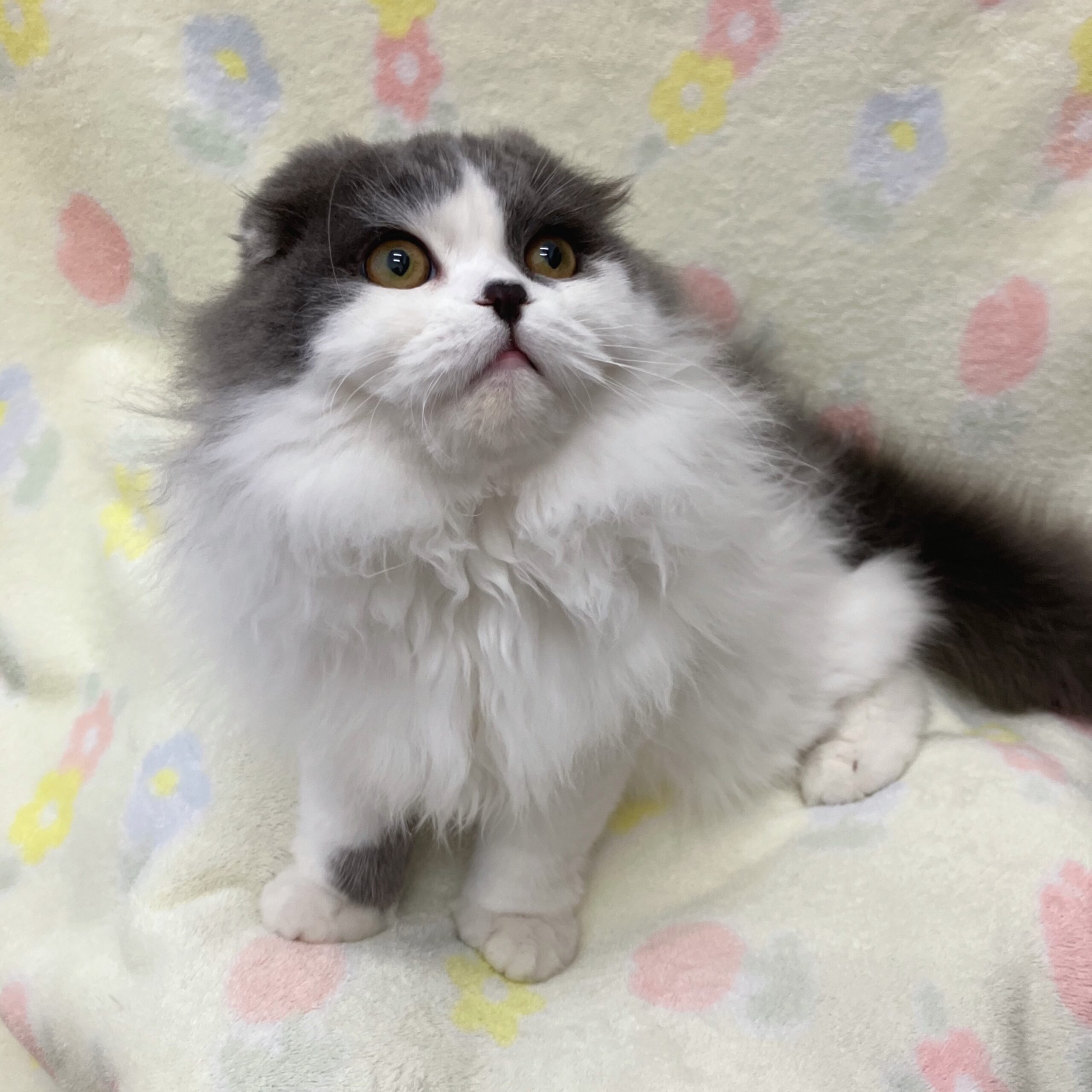 スコティッシュフォールド 2026 4/10 温厚な性格の男の子⭐ 毛色 ブルータビー&ホワイトバン 性別 男の子 生年月日 2025年09月26日生まれ 販売店 サンペット弘前安原店の子 アメリカンショートヘア MIX(チワワ×アメリカン・コッカー)