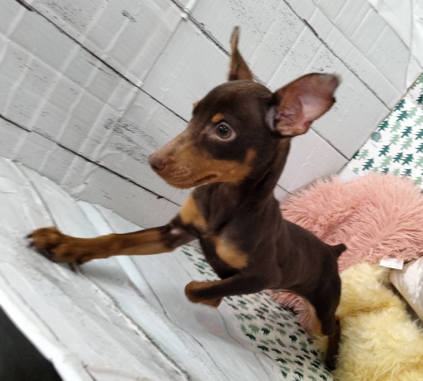 ミニチュア・ピンシャー 2026 4/11 チョコレート&タンの元気な男の子☆ 毛色 チョコレート&タン 性別 男の子 生年月日 2025年11月15日生まれ 販売店 サンペット能代店の子 ミニチュア・シュナウザー ミックス犬