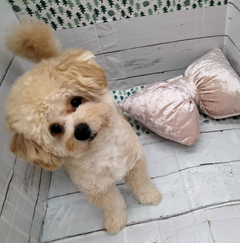 男の子 2025年01月26日生まれ サンペット能代店の子 甘ーいお顔の元気いっぱいイケメン君。母:トイプードル/父:ペキニーズ -