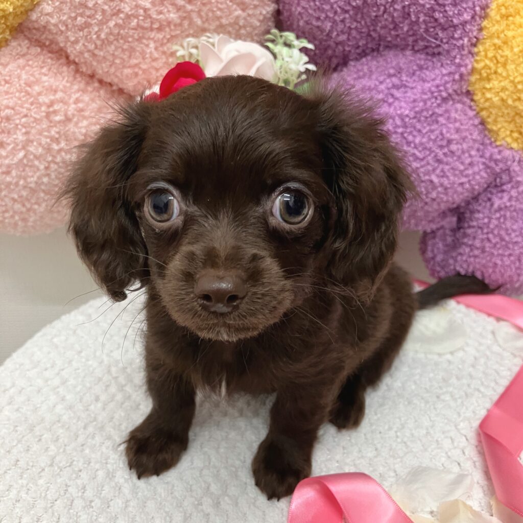 男の子 2025年11月16日生まれ サンペット弘前安原店の子 胴長短足のまんまるで珍しい組み合わせのミックスちゃん💛 -